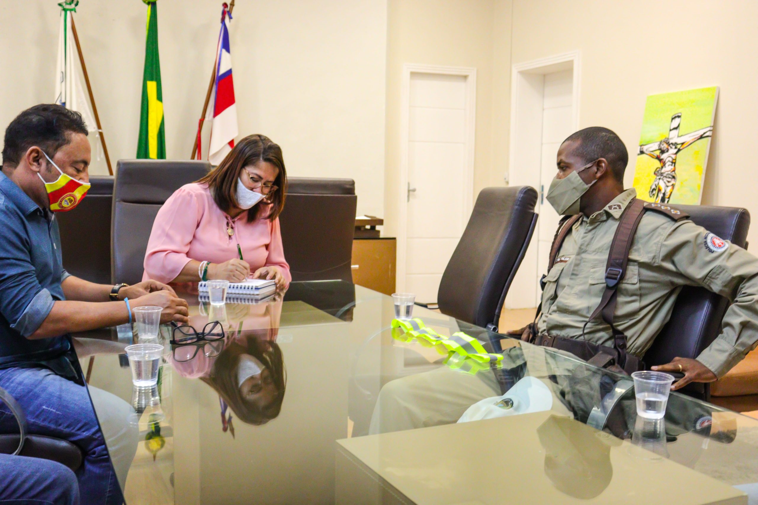 Nesta segunda-feira (19), a prefeita Suzana Ramos se reuniu com o coordenador de trânsito da PM na região norte, capitão Adjilson Moura. O deputado Roberto Carlos também participou do encontro. Durante a reunião, o coordenador de trânsito apresentou o projeto de sinalização de semoventes “Pista não é pasto”, iniciativa para sinalizar animais de grande porte e evitar acidentes.