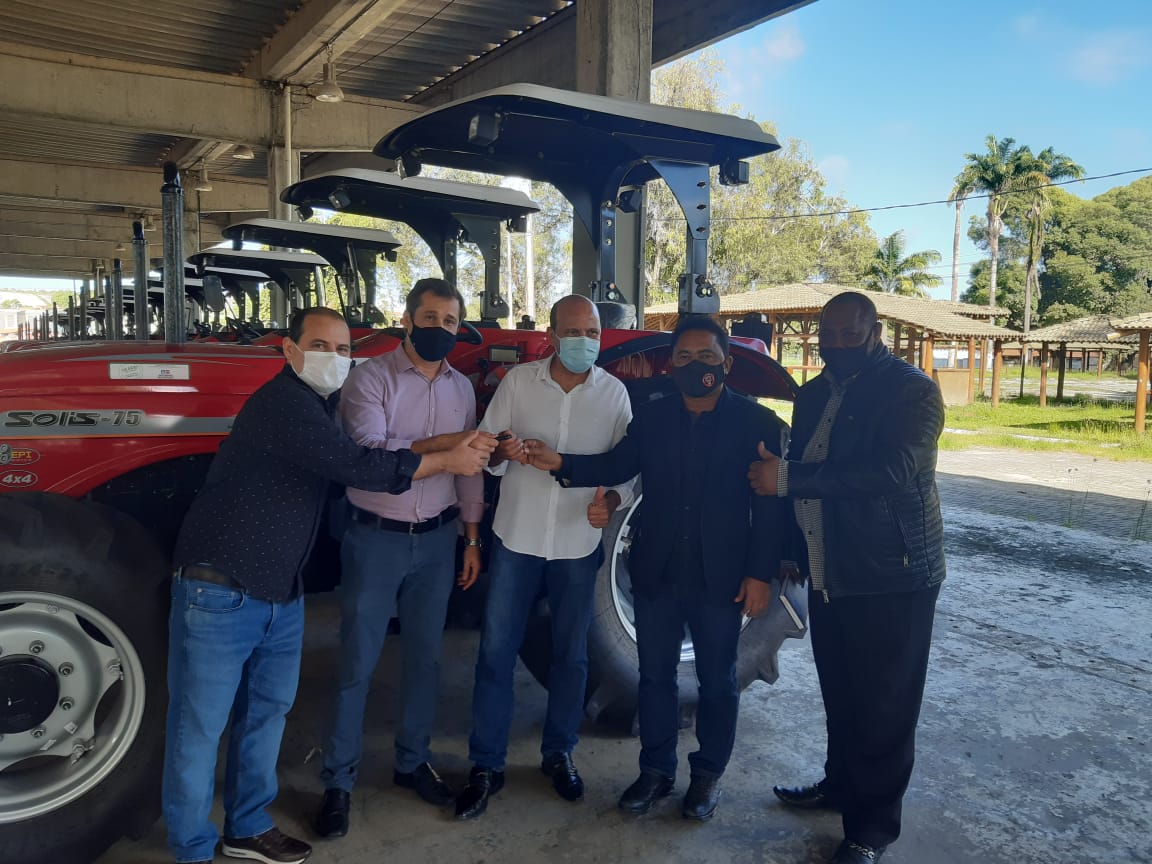 O deputado Roberto Carlos participou, nesta segunda-feira (03), no Parque de Exposições, em Salvador, da entrega de três tratores e implementos que vão garantir o fortalecimento da agricultura familiar do município de Senhor do Bonfim, beneficiando a sede e duas comunidades quilombolas.