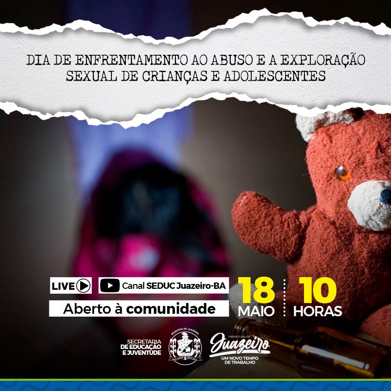 O dia 18 de maio é uma data que marca a realização de diversas mobilizações alusivas ao Dia Nacional de Combate ao Abuso e à Exploração Sexual de Crianças e Adolescentes. A data foi instituída pela Lei Federal Nº 9970/00, e este ano, a Prefeitura de Juazeiro, através da Secretaria de Educação e Juventude (Seduc), irá realizar uma live sobre a temática. O objetivo é alertar a população sobre a importância da detecção das diversas formas de violência cometidas contra crianças e adolescentes.