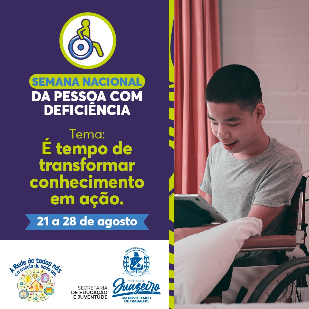 Com o intuito de sensibilizar a sociedade sobre a importância da adoção de práticas inclusivas e de respeito às diferenças, e de sensibilização sobre o direito à cidadania e inclusão social, a Prefeitura de Juazeiro, através da Secretaria de Educação e Juventude (Seduc), irá desenvolver uma programação alusiva à Semana Nacional da Pessoa com Deficiência, que este ano aborda o tema “É tempo de transformar conhecimento em ação”. A programação será desenvolvida entre os dias 21 a 28 de agosto e é composta por atividades voltadas para os diversos públicos.
